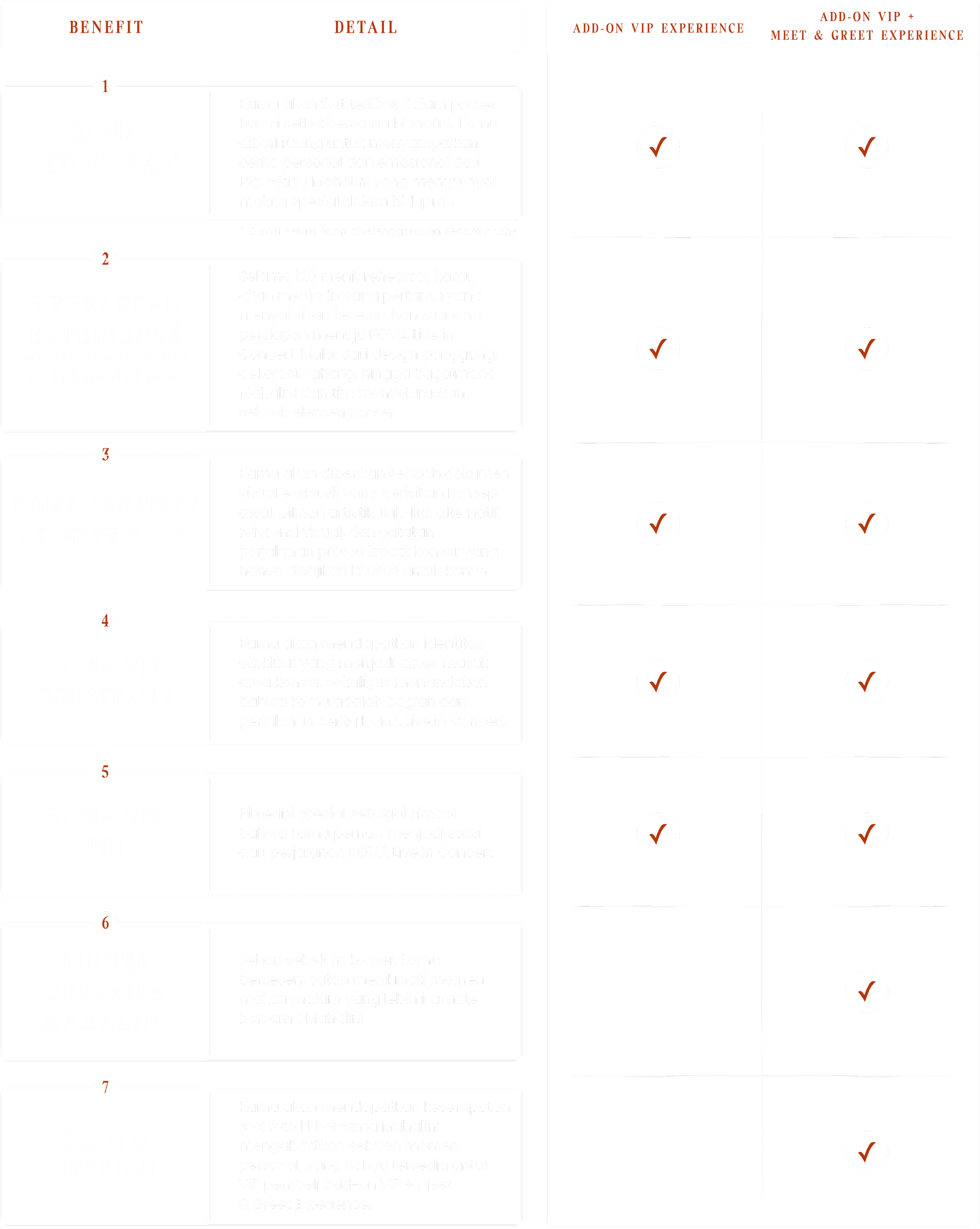 - Terdapat dua jenis Add-On Benefit: KOMA VIP Experience & KOMA VIP + Meet & Greet Experience.