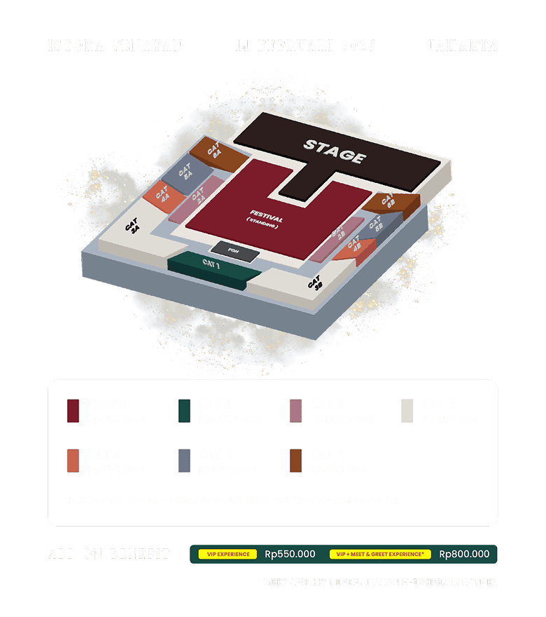 - Force majeure mengikuti kebijakan promotor. Biaya pribadi tidak ditanggung.